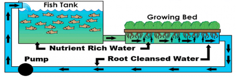 La acuaponía es un sistema que combina las características del modo tradicional del cultivo de peces empleado en la acuicultura junto con el cultivo hidropónico. En este sistema, los desechos metabólicos de los peces son aprovechados como nutrientes por las plantas para que puedan crecer y ellas mismas se encargan de limpiar el agua y eliminar los compuestos tóxicos para peces.