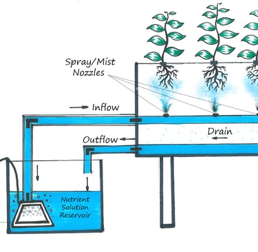 La idea de poder cultivar plantas con las raíces expuestas en el aire ha existido durante más de un siglo. Sin embargo, son los sistemas de aeroponía actuales el resultado de numerosas investigaciones sobre agricultura sostenible y de alta tecnología para el futuro.